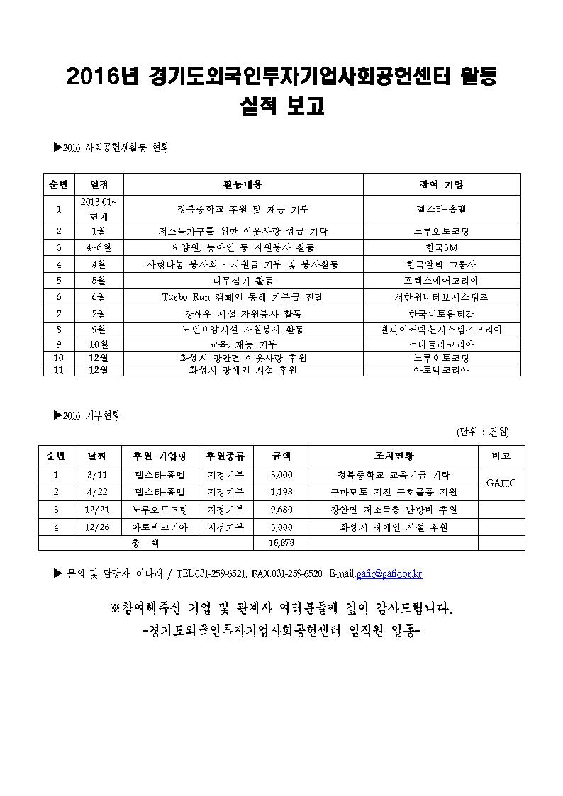 2016년 기부금모금실적 및 집행현황 공지 페이지 정보 작성자 GAFIC (221.♡.11.246) 댓글 0건 조회 2,319회 작성일 17-03-06 09:59 본문 목록 이전글한국3M 화성공장 18.01.03 다음글킴벌리클라이크이노베이션 17.01.05