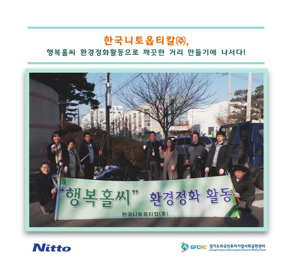 행복홀씨 입양사업은 주민 및 단체가 생활주변 공원, 청소취약지구 등 일정 구간을 입양해 자율적으로 청소 등의 활동을 추진해 민들레 홀씨처럼 행복이 세상에 퍼져나가도록 하는 민간주도의 환경정화 사업으로 한국니토옵티칼(주)에서도 참여기업으로 활동하고 있다.