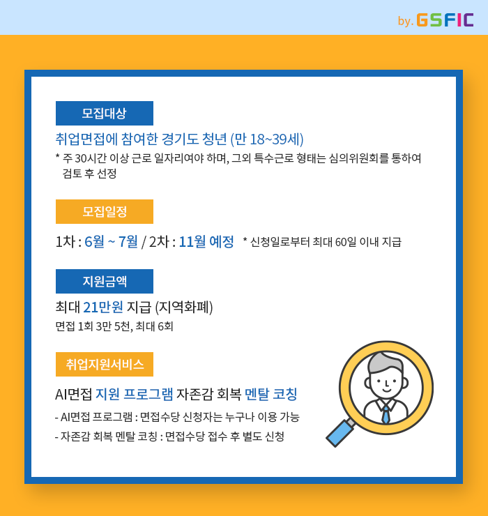 카드뉴스 경기도 청년 면접수당 페이지 정보 작성자 gafic (210.♡.251.54) 댓글 0건 조회 1,503회 작성일 20-06-05 15:47 본문 목록 이전글당신의 휴식, 경기도가 지원합니다 - 경기도 노동자 휴가비 지원 20.06.09 다음글2020년 R&D PLUS 파트너지원 프로그램 참여기업 모집 20.06.05